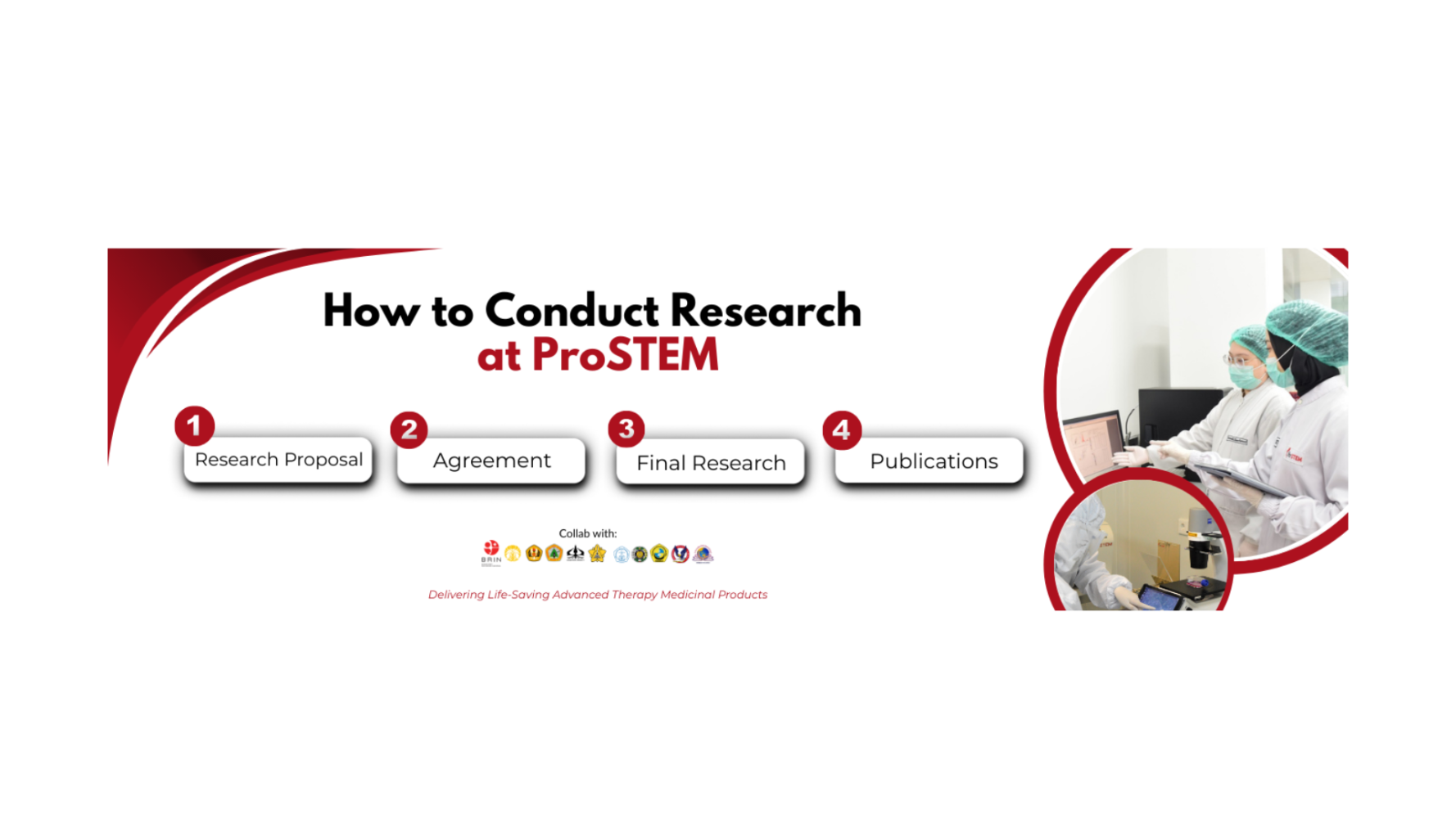 Sebagai salah satu bentuk komitmen PT. Prodia StemCell Indonesia sebagai pusat keunggulan, Laboratorium Penelitian dan Pengembangan terus mengembangkan pengetahuan ilmiah, khususnya di bidang penelitian sel punca. ProSTEM mendukung penelitian melalui: